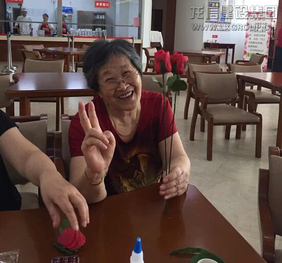 活動(dòng)現(xiàn)場(chǎng),工作人員為長(zhǎng)者們準(zhǔn)備了制作玫瑰花的材料,長(zhǎng)者與工作人員合作,將零散的花瓣一片一片的粘貼在一起,漸漸地有了花的形狀,花瓣緊緊的圍繞著花蕊,好似一群孩童擁圍著媽媽。