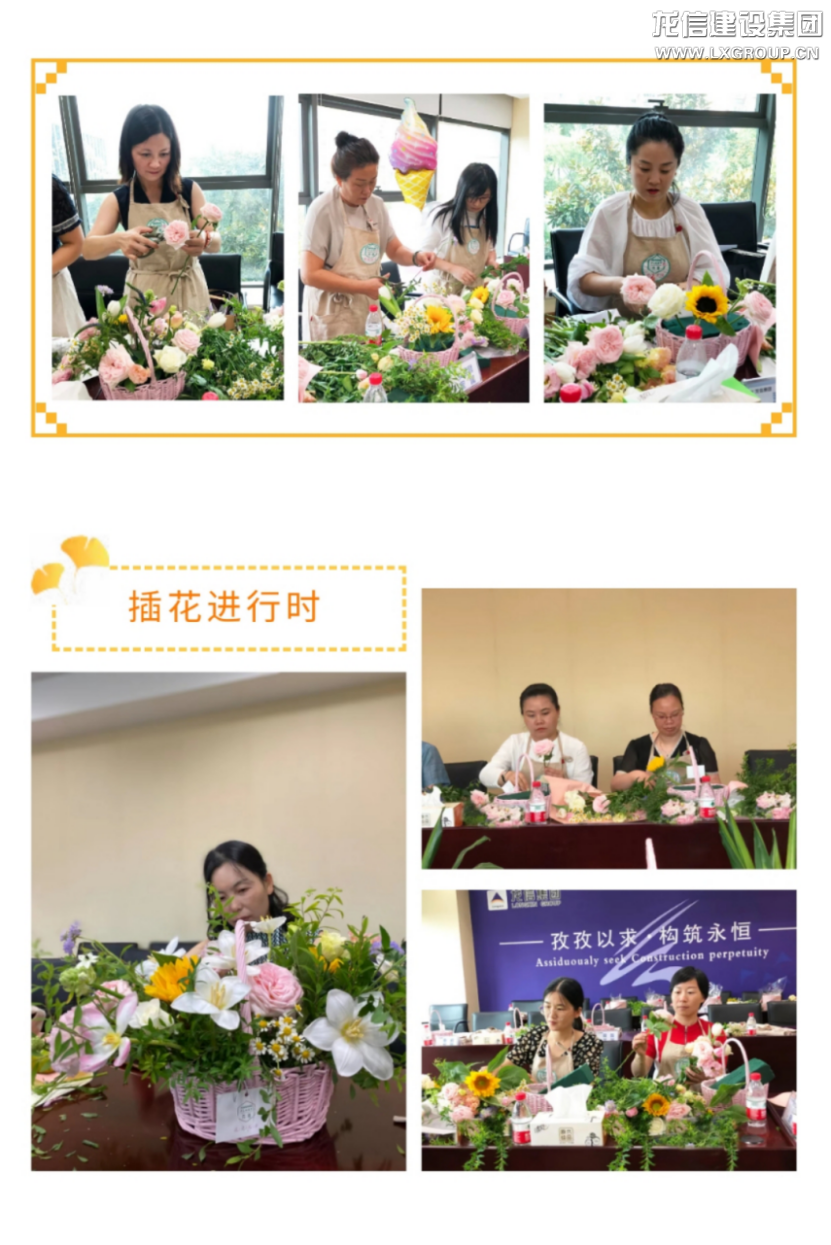 參觀結(jié)束,高管家屬在龍信大廈二樓會(huì)議室進(jìn)行座談并開(kāi)展插花活動(dòng)。座談中,大家表達(dá)了各自想法,肯定了公司近來(lái)年的發(fā)展,對(duì)公司給予的關(guān)心關(guān)愛(ài)表示感謝,祝愿公司在新時(shí)代高質(zhì)量進(jìn)程中,跑出發(fā)展加速度,創(chuàng)造更加美好的明天!隨后進(jìn)行的插花活動(dòng)中,花藝?yán)蠋熃榻B了鮮花名稱、特點(diǎn)及花籃制作步驟。大家在這一過(guò)程中,不僅欣賞到花的自然美,還體驗(yàn)到人與大自然,人與藝術(shù)的交流,陶冶情操的同時(shí)提升了藝術(shù)修養(yǎng)。