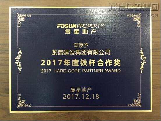 12月18日,復星地產(chǎn)2017年度“凝心聚力,共創(chuàng)未來”合作供應商大會在上海萬達瑞華酒店勝利召開。龍信集團被復星地產(chǎn)授予“2017年度鐵桿合作獎”榮譽稱號,龍信二分公司二部經(jīng)理施建昌應邀出席頒獎大會并領獎。