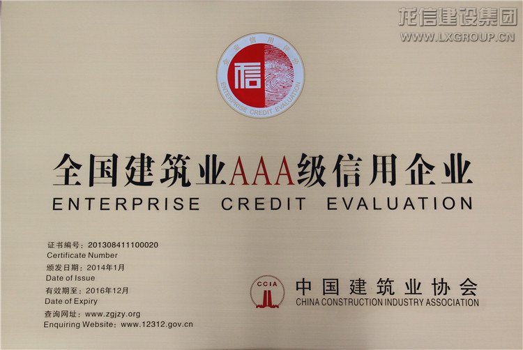 2013年獲得全國建筑業(yè)AAA級信用企業(yè)