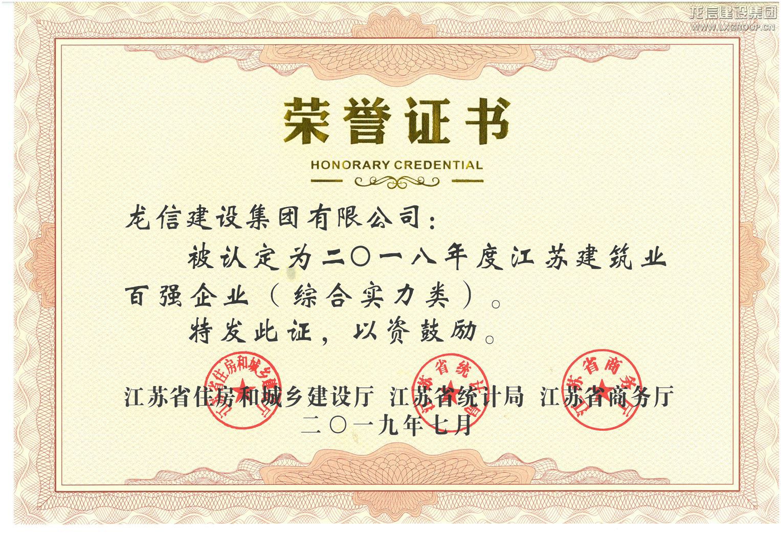 2018年度江蘇建筑業(yè)百強企業(yè)(綜合實力類)