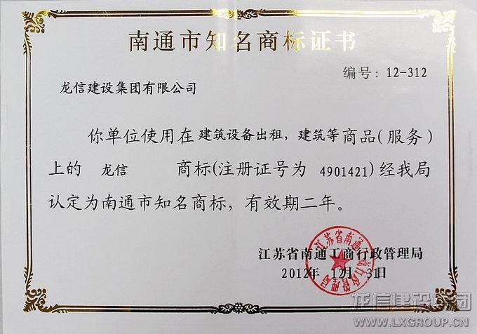 此外,在每一個(gè)龍信人的努力下,基于業(yè)界的口碑、市場(chǎng)的認(rèn)可、大眾的肯定,龍信集團(tuán)一直享有較高的聲譽(yù),“龍信”商標(biāo)經(jīng)江蘇省南通市工商行政管理局認(rèn)定為南通市知名商標(biāo)。