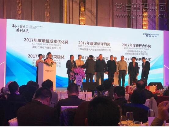 12月18日,復星地產(chǎn)2017年度“凝心聚力,共創(chuàng)未來”合作供應商大會在上海萬達瑞華酒店勝利召開。龍信集團被復星地產(chǎn)授予“2017年度鐵桿合作獎”榮譽稱號,龍信二分公司二部經(jīng)理施建昌應邀出席頒獎大會并領獎。